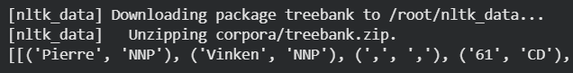 - Treebank 数据集包含已经标注了词性标签的句子。