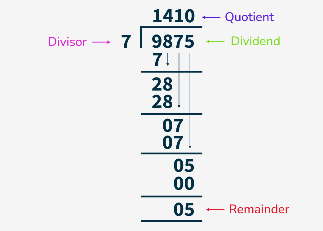 长除法 是一种用于对大数进行除法运算的系统化方法,它将复杂的计算分解为一系列可管理的步骤:除法、乘法、减法和落下下一位数字。