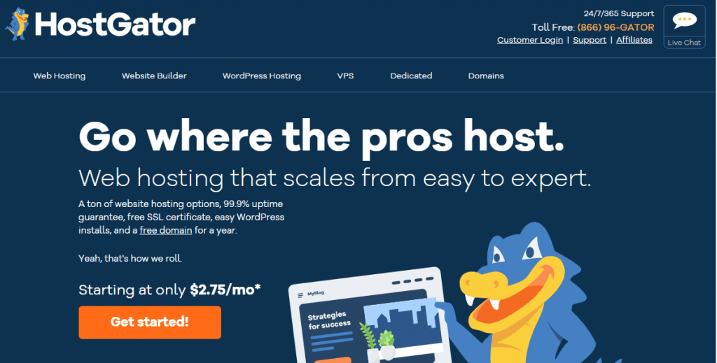开始使用 HostGator(托管计划起价为 2.75 美元/月)