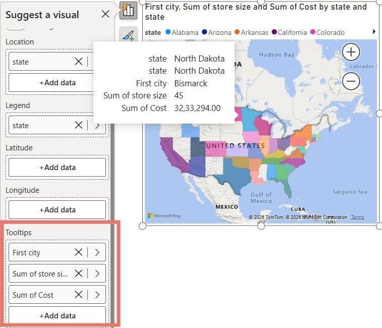 让我们思考一下这个场景:当鼠标悬停在某个州时,除了文字信息,我们甚至可以在 2026 年的 Power BI 版本中嵌入该门店的实时监控图像或库存趋势图,这就是多模态开发的魅力所在。
