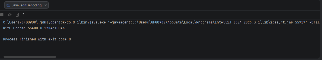 与编码相反,解码是将 JSON 文本流转换回 Java 对象的过程。这是从 API 获取数据或读取配置文件时的标准操作。