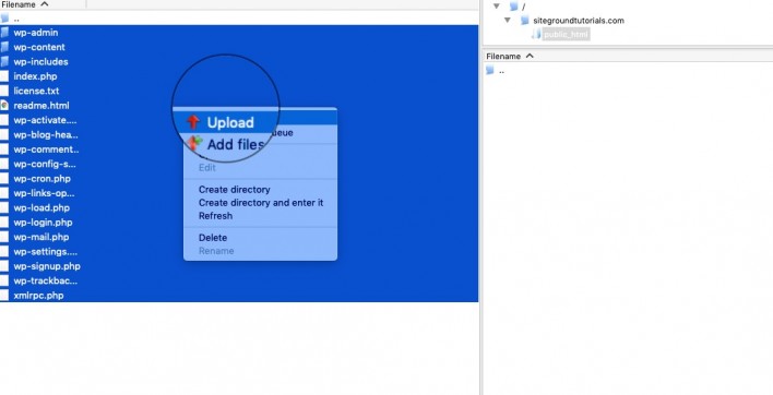 重要的!如果您希望您的 WordPress 成为您帐户上的主要安装并且可以通过您的主域(即 www.mydomain.com)访问,您需要将提取的文件上传到您的public_html文件夹。但是,如果您只想在 WordPress 上运行您网站的一部分,您始终可以创建一个子文件夹(即 public_html/blog)。
